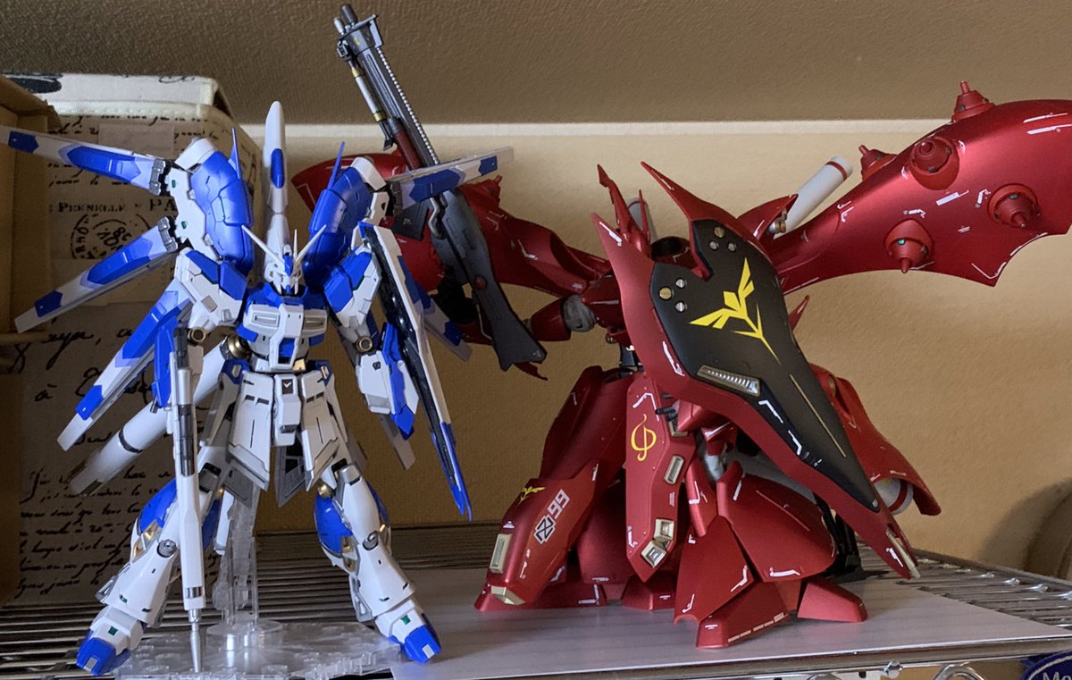 こんばんは "逆襲のシャア"の主役達を並べてみました 揃うと並べてみたくなりますよね 前段がHGUCで後段がRGですが、全て1/144スケールです #ガンプラ好きと繋がりたい #ガンプラの画像貼るとRTされると聞いて #ガンプラ