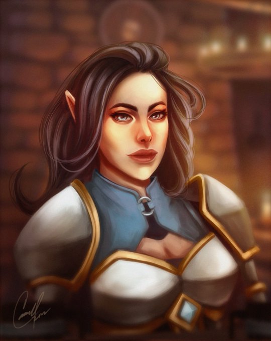 Repainting my PC, Reginleif. Oath of Vengeance Pally, Half-Elf, bastard of Klothys. #dnd #dnd5e #dndart #dndcharacter #ttrpg #ttrpgfamily #digitalart