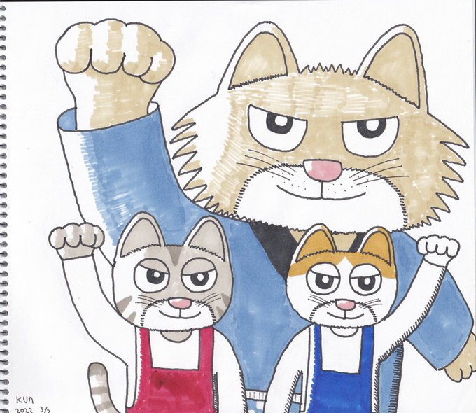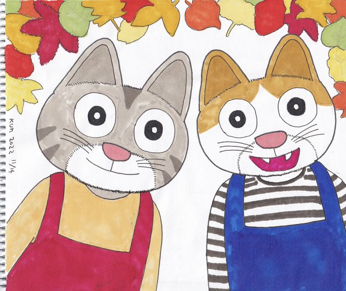 オーバーオールを着たポン太とチン太 #猫のイラスト #猫の絵 #猫 #イラスト #Manga #CAT #アナログイラスト #일러스트 #イラストレーション #漫画 #マンガ #만화 #ほのぼの #ほっこり #Illustration #オリジナルキャラ #イラスト好きな人と繋がりたい #みんなで楽しむTwitter展覧会