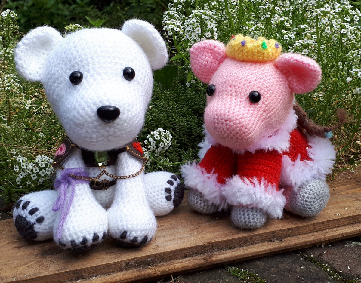 I crocheted The Twins, as per @goodnitereality's request! I even tried to recreate the image (kinda) #beeduofanart #tubbofanart #ranboofanart #TalesFromTheSMPArt I might do more projects based on replies. These are fun.