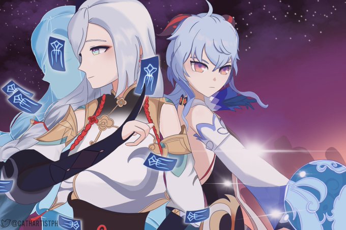 Shenhe and Ganyu Double Burst Plenilune Transcendence #GenshinImpact #原神 #genshinimpactfanart #artph