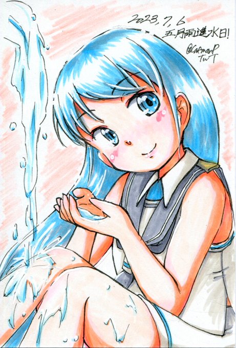 #秋月進水日 #艦これ版深夜の真剣お絵描き60分一本勝負 #艦これ版真剣お絵描き60分一本勝負_20230702 ちょっとしたツールを手に入れたので、丁寧に描いてみました ちょっとしたツールとは何かというと…