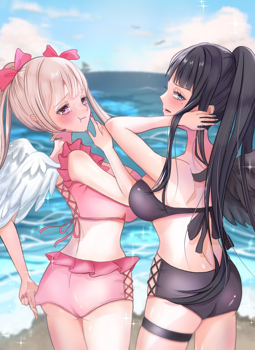 2 10 海に遊びに来た天使と悪魔🌊 #イラスト #イラスト練習 23/07/08 06:20