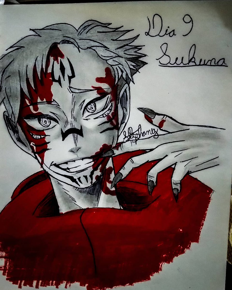 Dia 9 - Sukuna Ryomen Me inspirei numa fanart que achei no pinterest, não sei quem é o autor #JujutsuKaisen #sukuna #inktober2021 #inktober2021day9 #inktoberanime