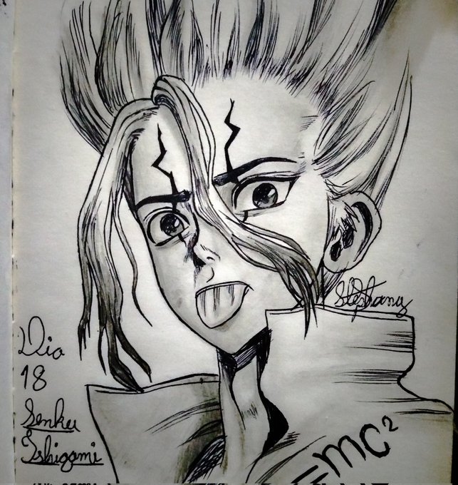 Dia 18 - Senku Ishigami Ficou tão bonitinho🥺 ❤ + 🔁 = Alegria #DrSTONE #senku #inktober2021 #inktober2021day18 #inktoberanime