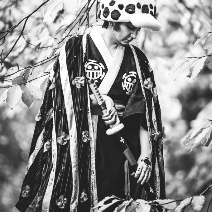 Theres something about black and white photos that hit differently. #trafalgarlaw #ONEPIECE #wanokuni #lawcosplay #cosplay