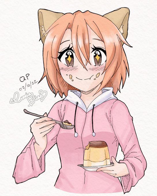 Today's character is our beloved QP enjoying her beloved pudding ~ <3 #inktober2022 #fanart #orangetober