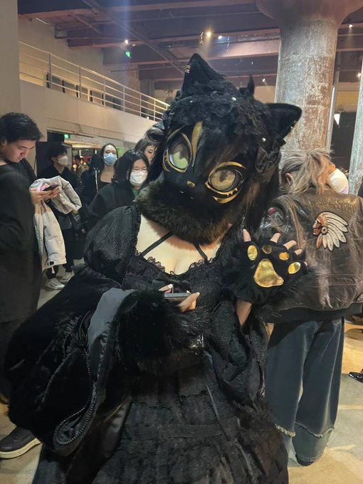 不会日文抱歉,这套猫扎古的原型是这位画师的@kyoutasab 很早之前刷到了就开始准备制作cos了,耳朵做了发光的改动和脸上的腮红改动希望不要介意!!