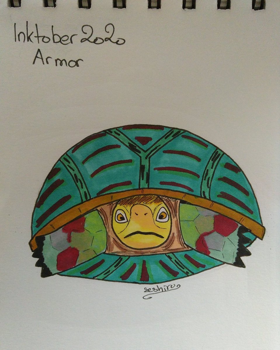 #inktober2020 jour 14 : "Armor" Pour la tortue que je suis, impossible de ne pas dessiner l'armure naturelles qu'es celles-ci arborent. (Ouais j'ai fais des test avec les couleurs c'est... Étonnant)