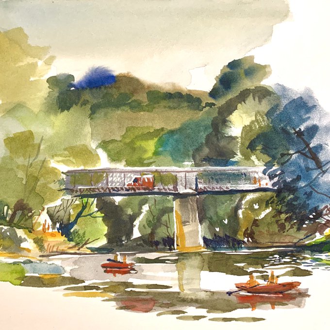 My feet in the river, it feels so good to paint again in the Dordogne #watercolor #sketch #dordogne