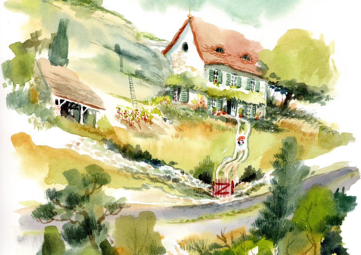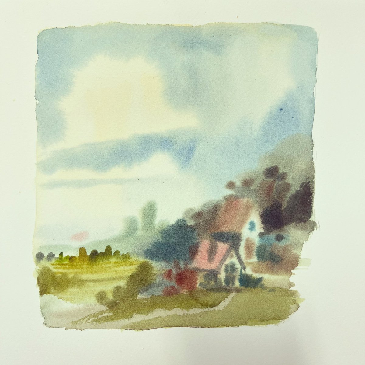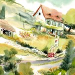 a 5mn watercolor painted during the shooting of the M6 interview. Soon on national tv. #watercolor #dordogne #indiegame