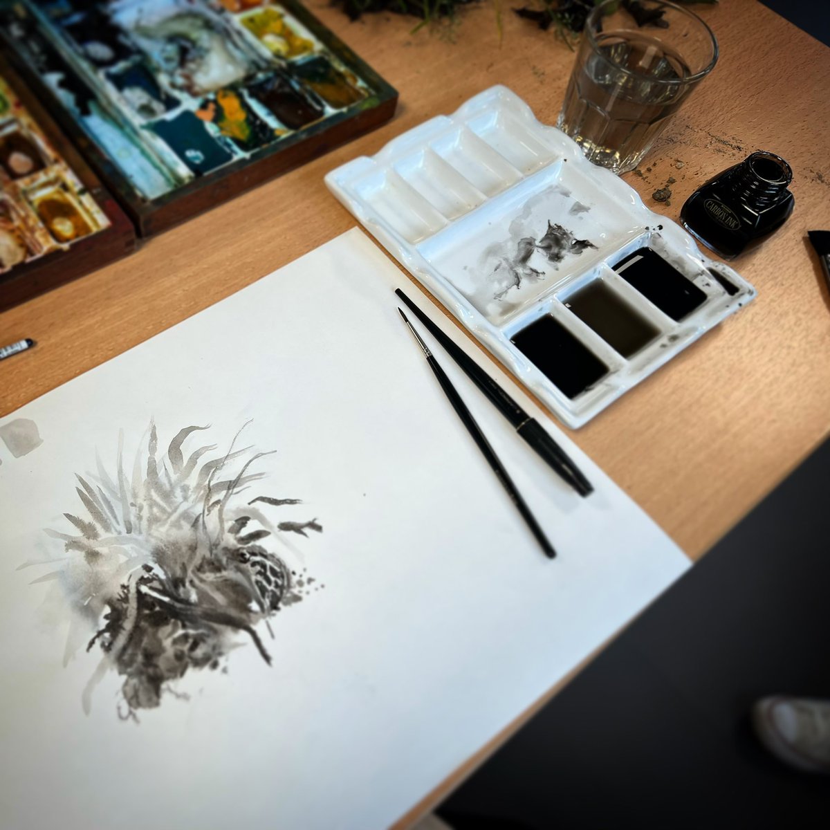 a quick demonstration to my students at the @EcoleEmileCohl school of Angouleme on the use of grey values with India ink. the exercise consists of representing a clod of earth and grass by finding the right balance between accuracy and spontaneity. #watercolor #sketch