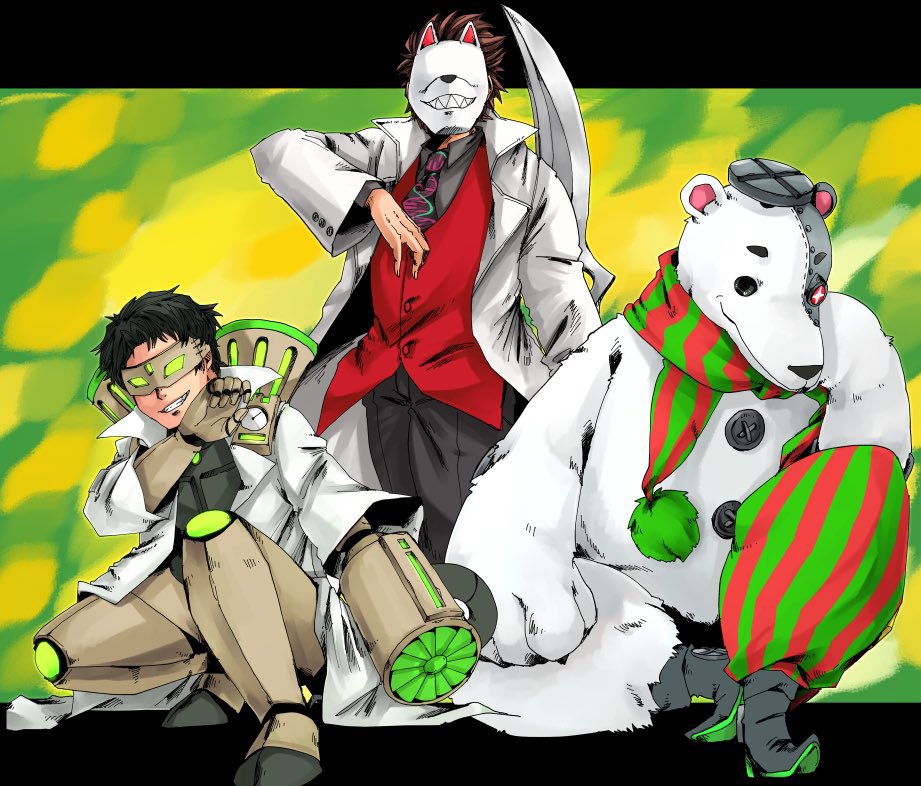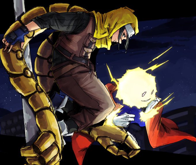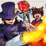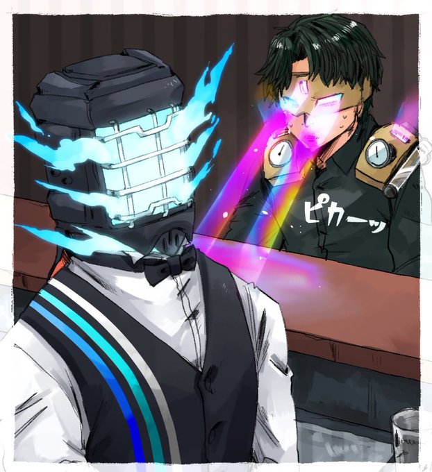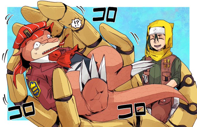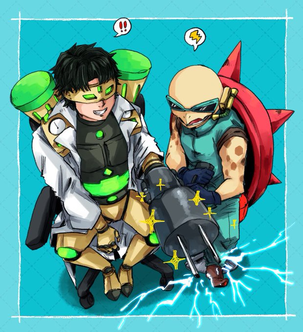 17 112 今月のお二人はこちらでした。エメツさんデビュー&初描き回です!シラノさんもだいぶ久々に描きました!巨大アーム描写、夢があるので今後描く時も色々試してみたいですねー💪 22/04/25 12:39