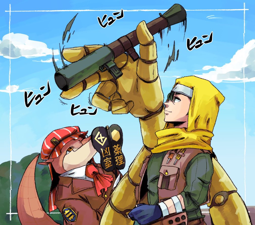 59 424 今月はこちらのお二方でした。アームに持たせた結果、ロケランをペン回しする図が出来上がりました…w 22/09/24 12:33