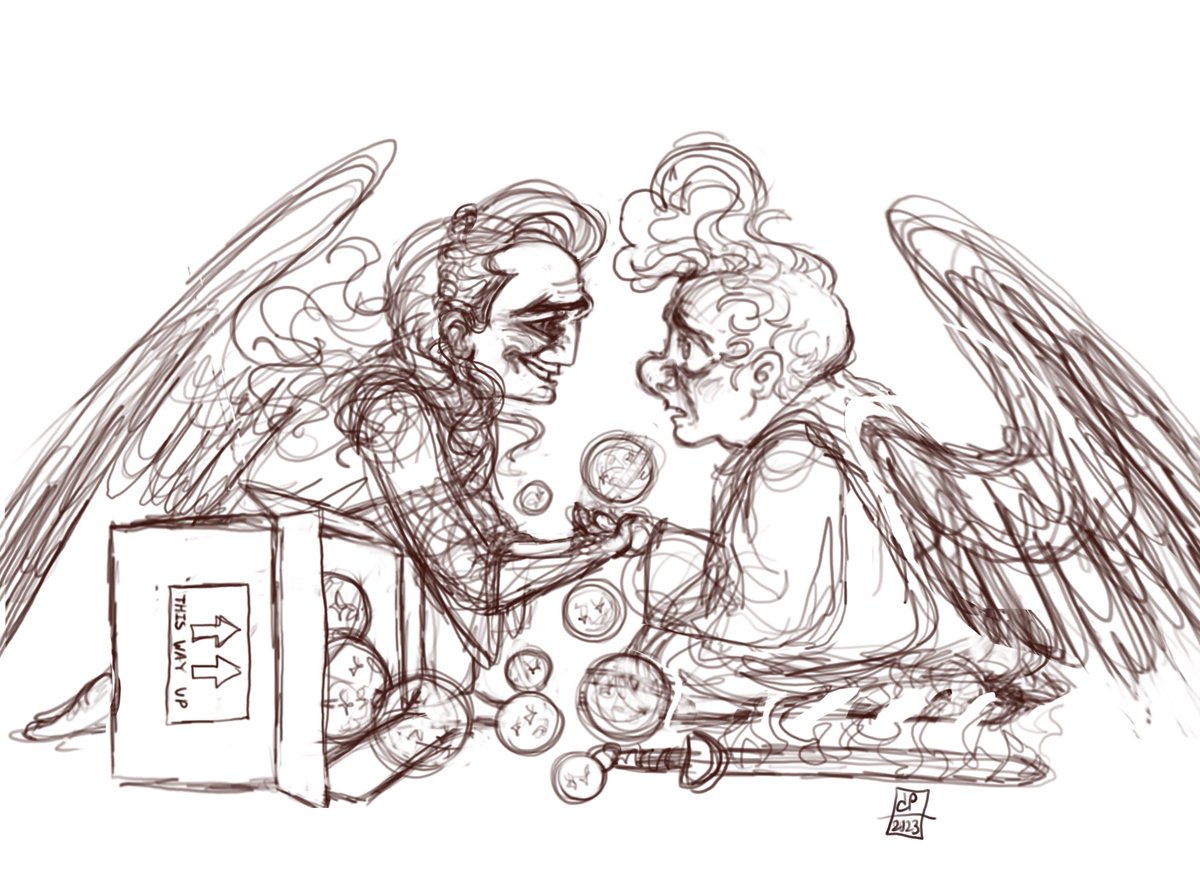 ❣️[Lovers Quarrel]❣️(1/2) When safety is put on the line And a risk of being apart forever is at hand, An intense quarrel would awaken For two immortal beings With unkindly words blindly spoken Through mutual frustration and tears #GoodOmens #GoodOmens2 #GoodOmensFanArt