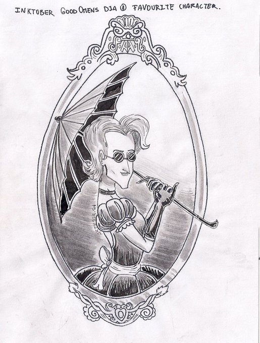 INKTOBER! Day 1 “Favourite character” from GoodOmens list //MissAshtoreth in a delicate pompous dress. I love her sooo much #GoodOmens #Crowley #NannyAshtoreth #NeilGailman #Inktober2019 #Inktober #ArtySirSN