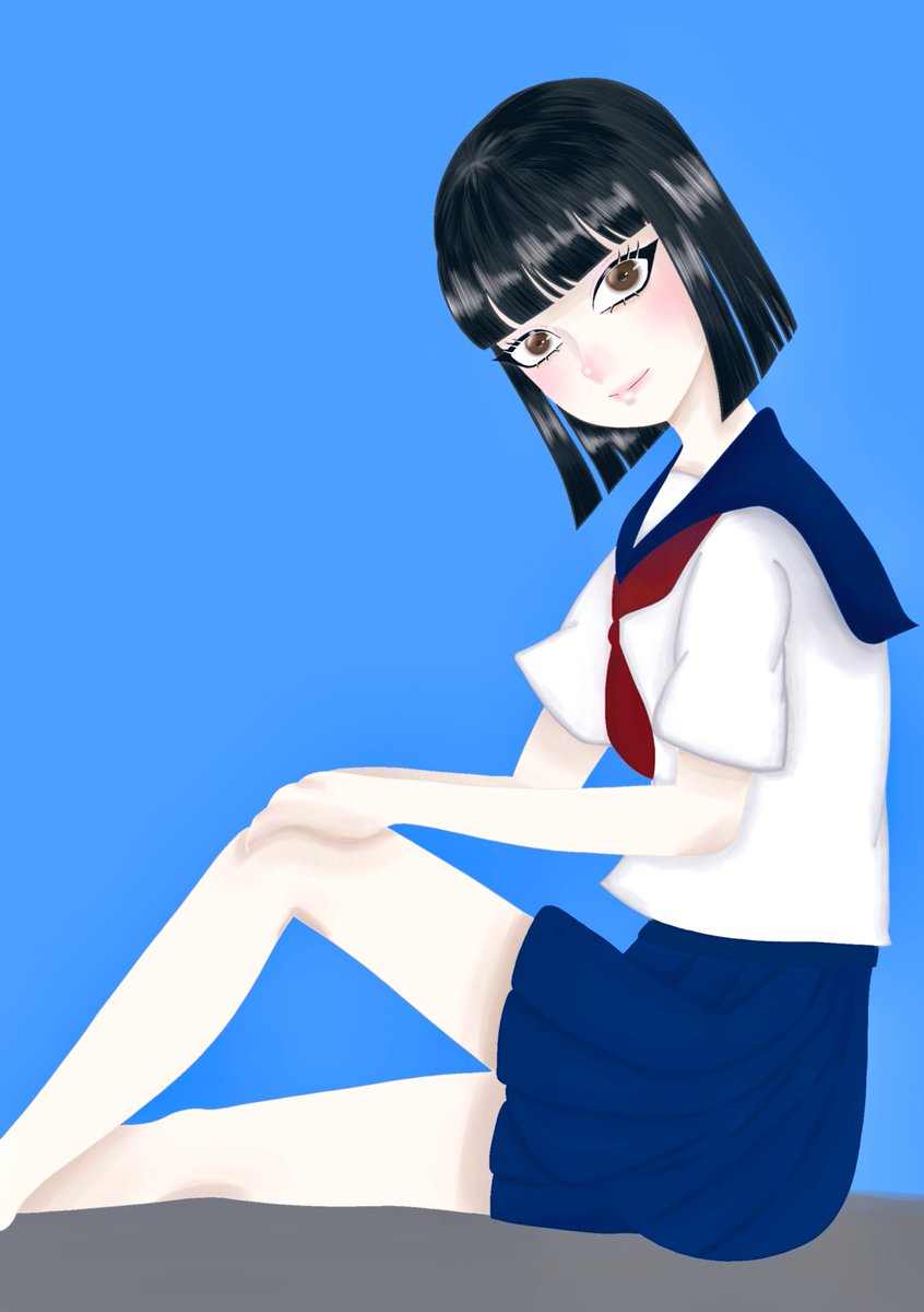 背景の描き方が知りたい そんで私はもっと優しげな女の子を描くつもりだったのになんか目力強く見えるんだけど #セーラー服 #イラスト #デジタルイラスト #絵柄が好みって人にフォローされたい #絵描きさんと繋がりたい