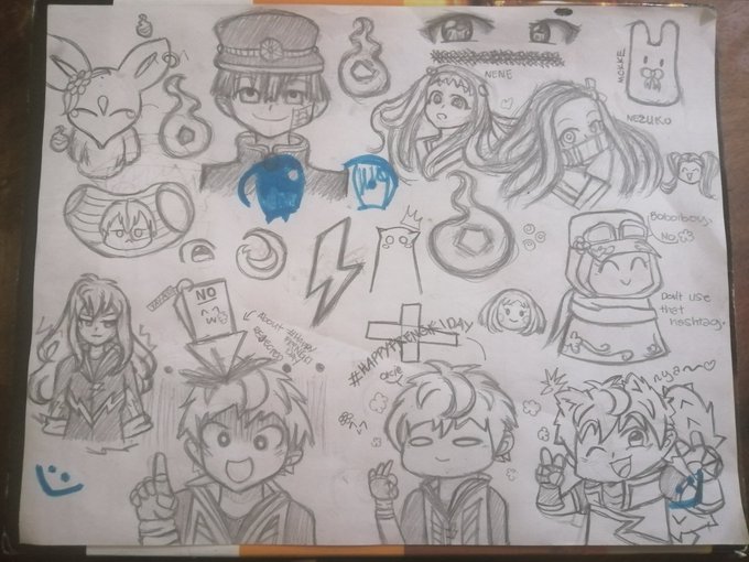 just gonna post my bond paper full of dOodles YwY--- #BoBoiBoy #BoBoiBoyFanart #JibakuShounenHanakokun #kimetsunoyaiba #kimetsunoyaibafanart