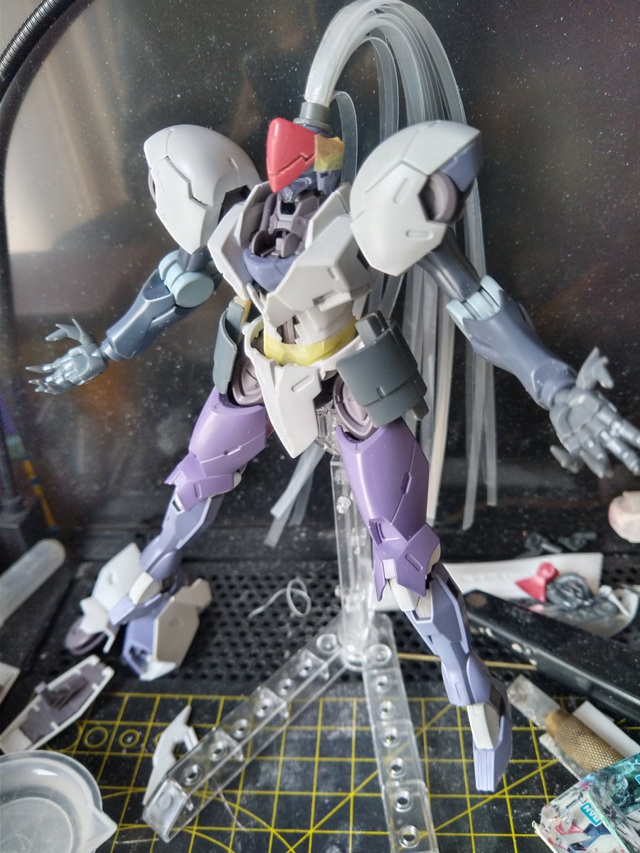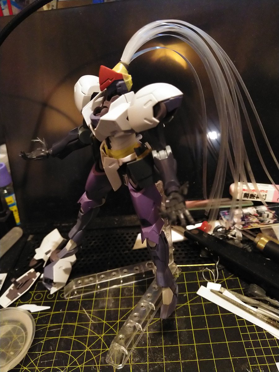バサエリス(仮称)進捗~ヾ(・ω・ヾ) ベギルペンデと共通規格と思ってたけど脚部はミカエリスの方が長くて新造フレームだったため膝周りを加工するハメに( ̄▽ ̄;) 脚長いとスタイル良いね❗ #ガンプラ #ガンプラはどんな自由な発想で作ってもいいんだ