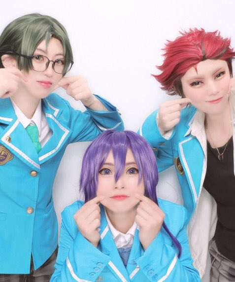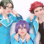#ミヤオリ #ミヤコス あんさんぶるスターズ 紅月メンバーの制服 ※蓮巳さんのメガネ違います。 蓮巳敬人⇒私 鬼龍紅郎⇒@shiara8686 さん 神崎颯馬⇒@BlueRose_k_m_ さん 📸@vampiremiyu0918 さん