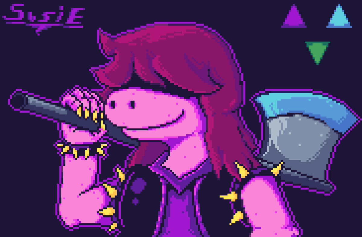 #ドット絵 #pixelart #DELTARUNE #deltarunefanart #DeltaruneChapter2 Susie. Se pueden creer que ya es la tercera vez que intento mandar este pixel art y por alguna pinche razón no carga la puta imágen? Dx