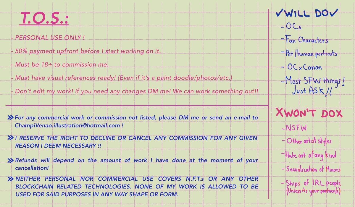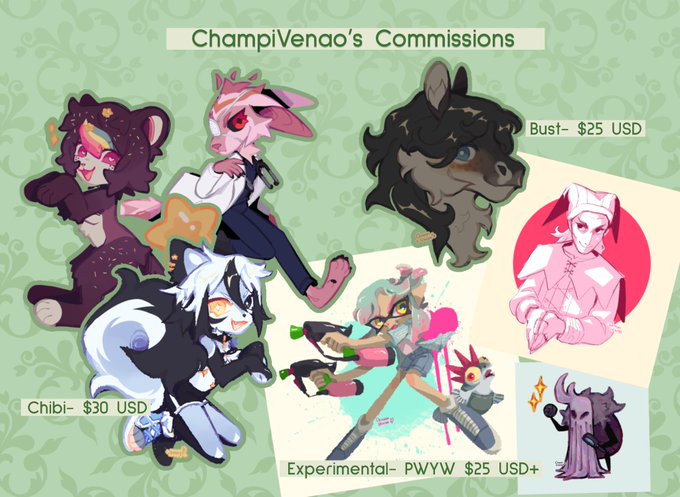 Hi #PortfolioDay ! Im Dany (he/they) ! Im a mexican illustrator and i draw a bunch of different stuff :D ✨Comm info in pinned tweet :> 🌱 champivenao.weebly.com 🌿 champivenao.illustration@gmail.com