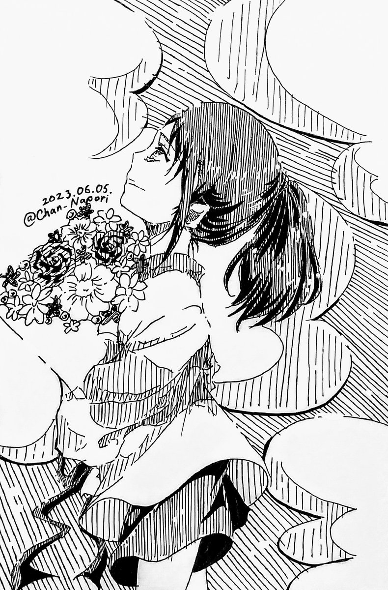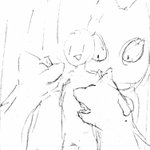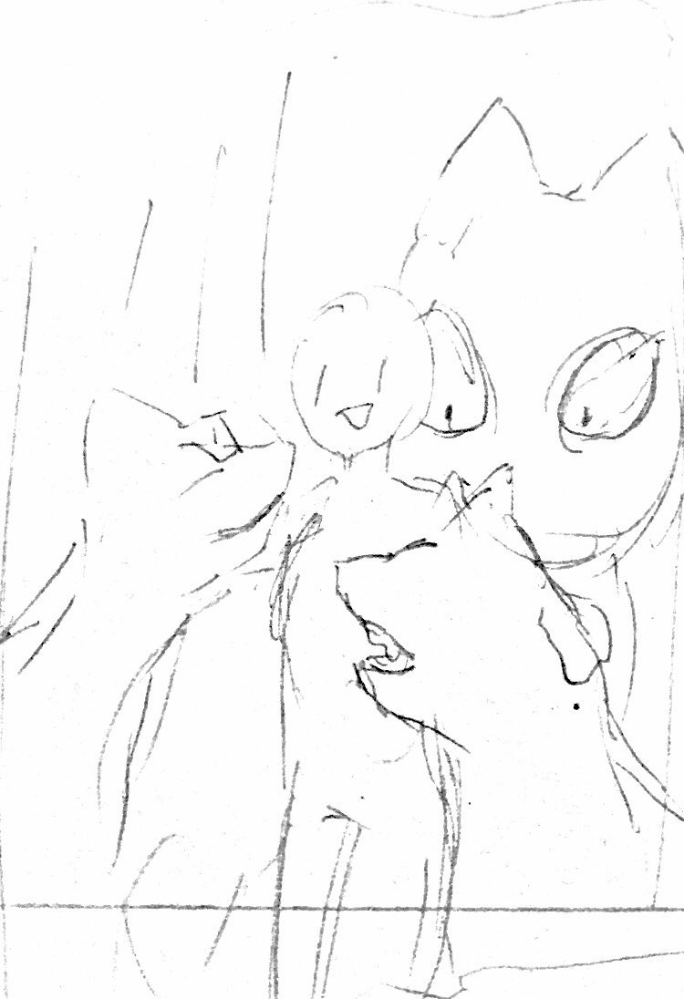 #このタグを見た人はラフ画とその完成絵を見せる 私はラフを本番絵の隅に描いて下絵とペン入れをした後は消す為、基本ラフは残ってません。現像してるのはコレしか有りませんでした………。 にしてもこの後ちゃんと形として成り立ってんのが凄ぇわって我ながら思う。 ʅ(◞‿◟)ʃ