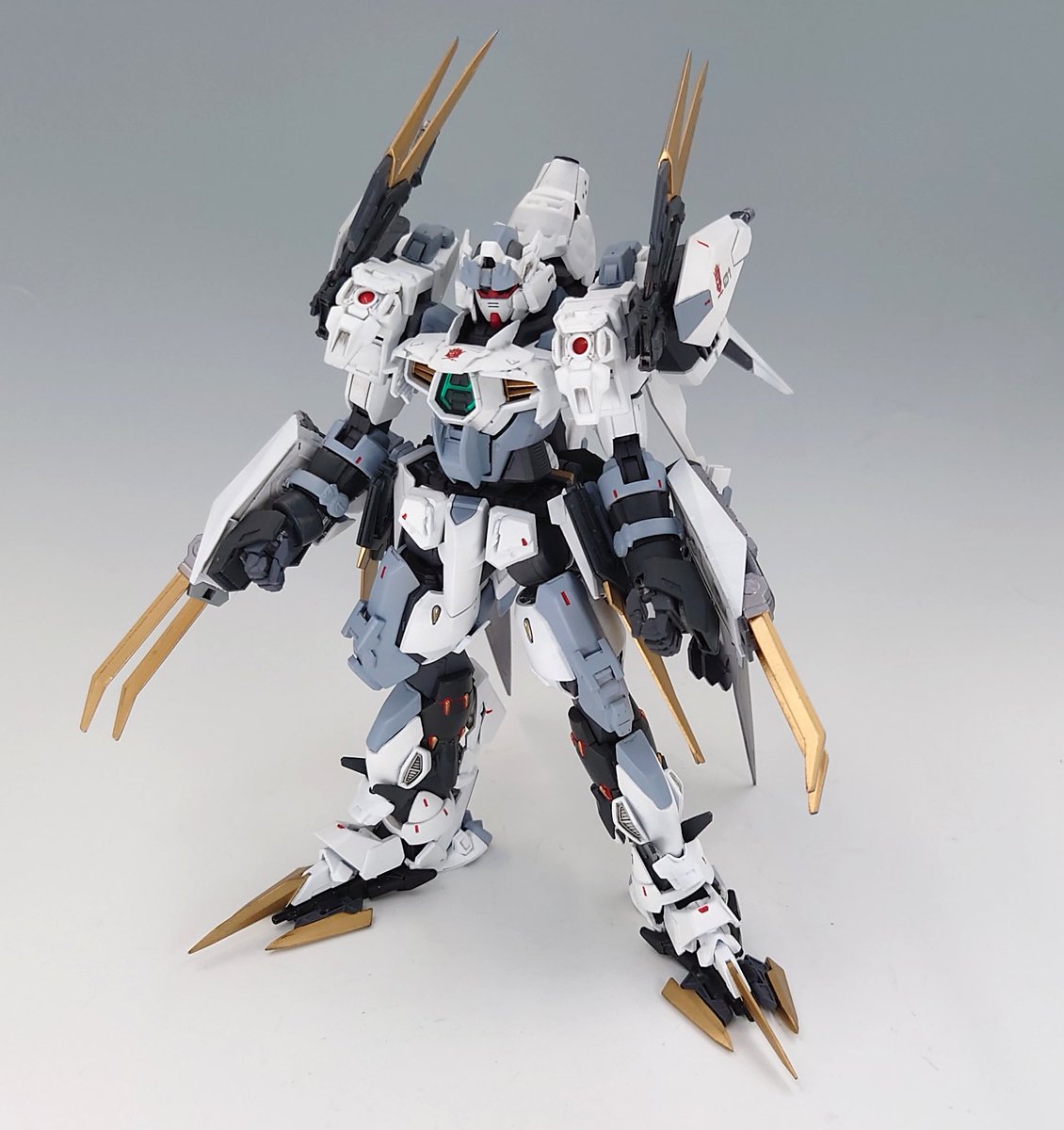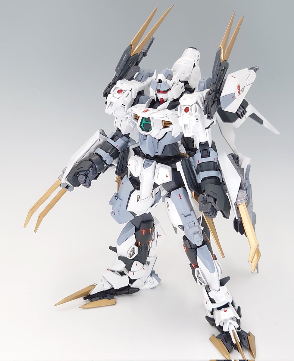 #あかつく製作記_ラファエルガンダム風制作 完成しました。 仮想MG ラファエル・プレリュード 1/100 ヴァーチェ、セラヴィー HGヴァーチェ系、セラヴィー系の キットをでミキシング、爪はセミスクラッチ し、ラファエルの最初期設計案 と言うオラ設定で作成しました。