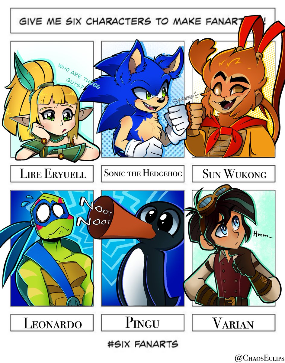 Finished the #sixfanarts challenge! Unfortunately, my wifi left the house for practically the entire day. It only came back a few minutes ago, so that's why I'm posting this at 1am... 😅 #rottmnt #LegoMonkieKid #SonictheHedgehog