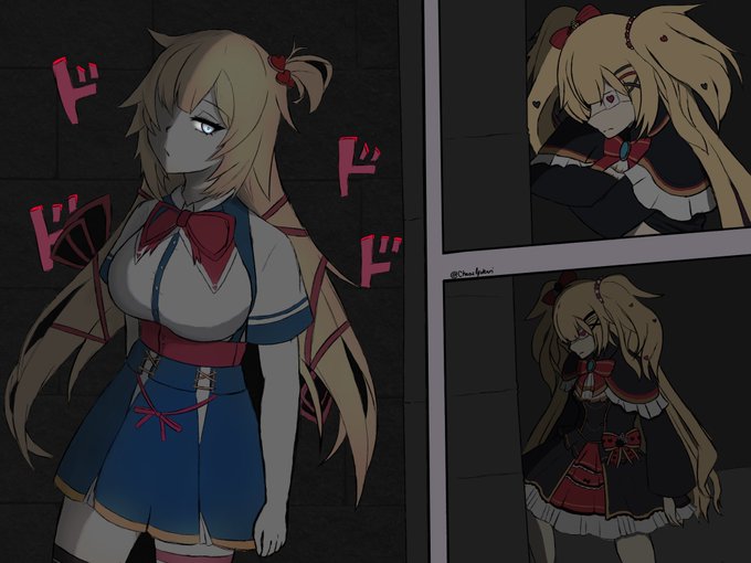 Reine Pavolia cosplaying as Sagume Kishin from Touhou Legacy of Lunatic Kingdom , Goddess Who Invites Unfortunate Slips of the Tongue. #Reinessance Reference and transparent bg in replies.