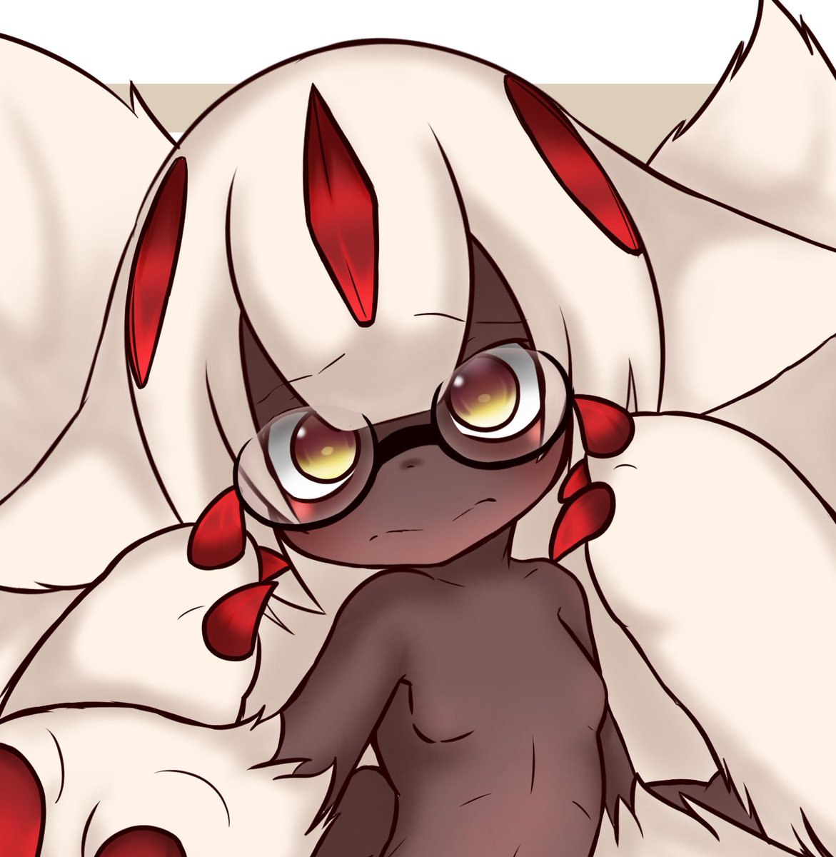 Faputa using glases!!, cuz i like glasses on cute things, though i wish i could draw glasses properly (〃 ̄ω ̄〃ゞ Any kind of suggestion will be welcomed #Madeinabyss #Fanarts #digitalart #CLIPSTUDIOPAINT