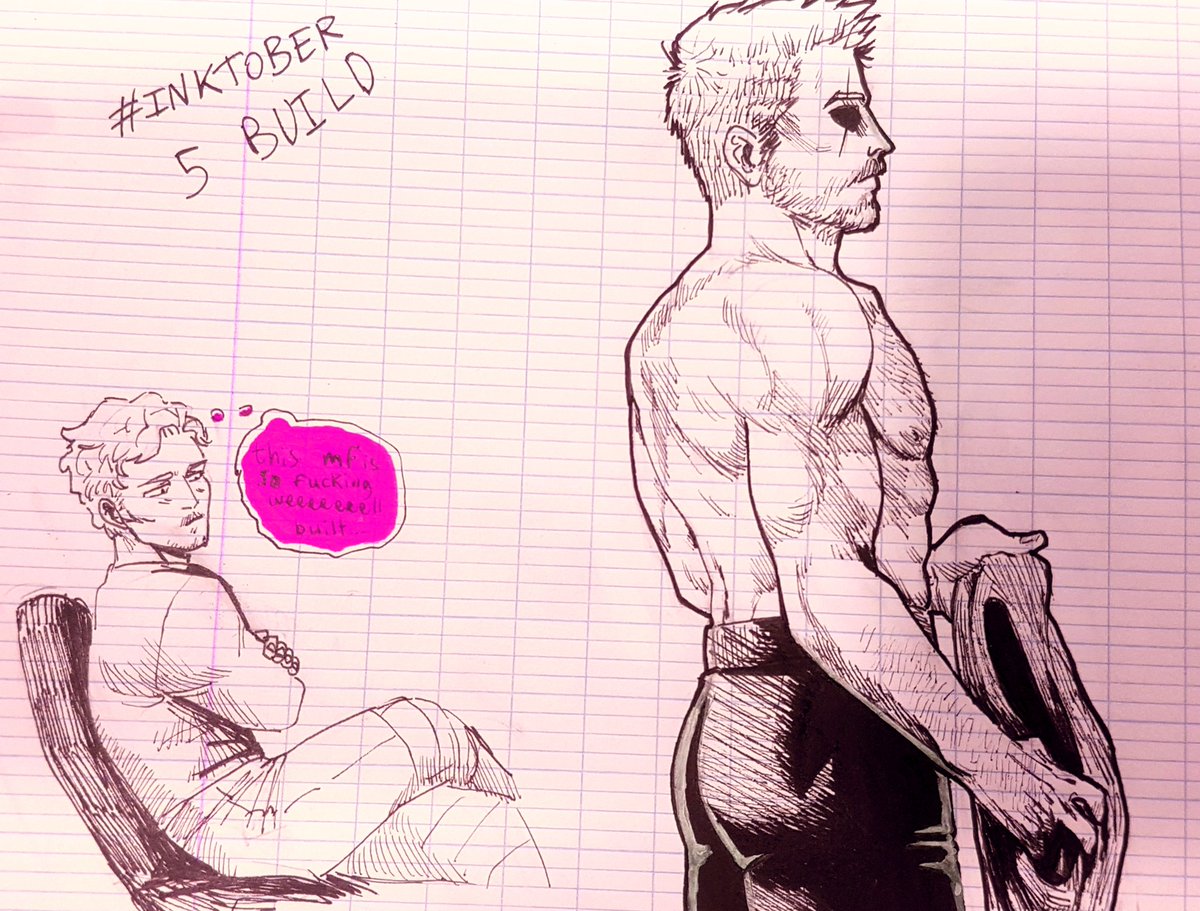 Quill: this mf is so fucking weeeeeell built Lol I can't help myself not doing a thorquill related drawing #Inktober2019 #inktober #inktoberday5