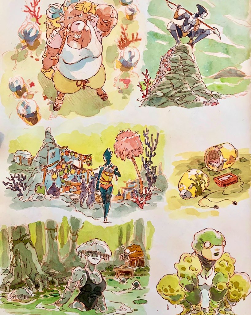 Life on Helios : Humanity's last arch. #comics #rough #color #pencils #watercolor #scifi #waterworld