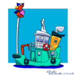 #ツイッターで楽しむ展覧会 #内航船の日 こんどは船舶の絵