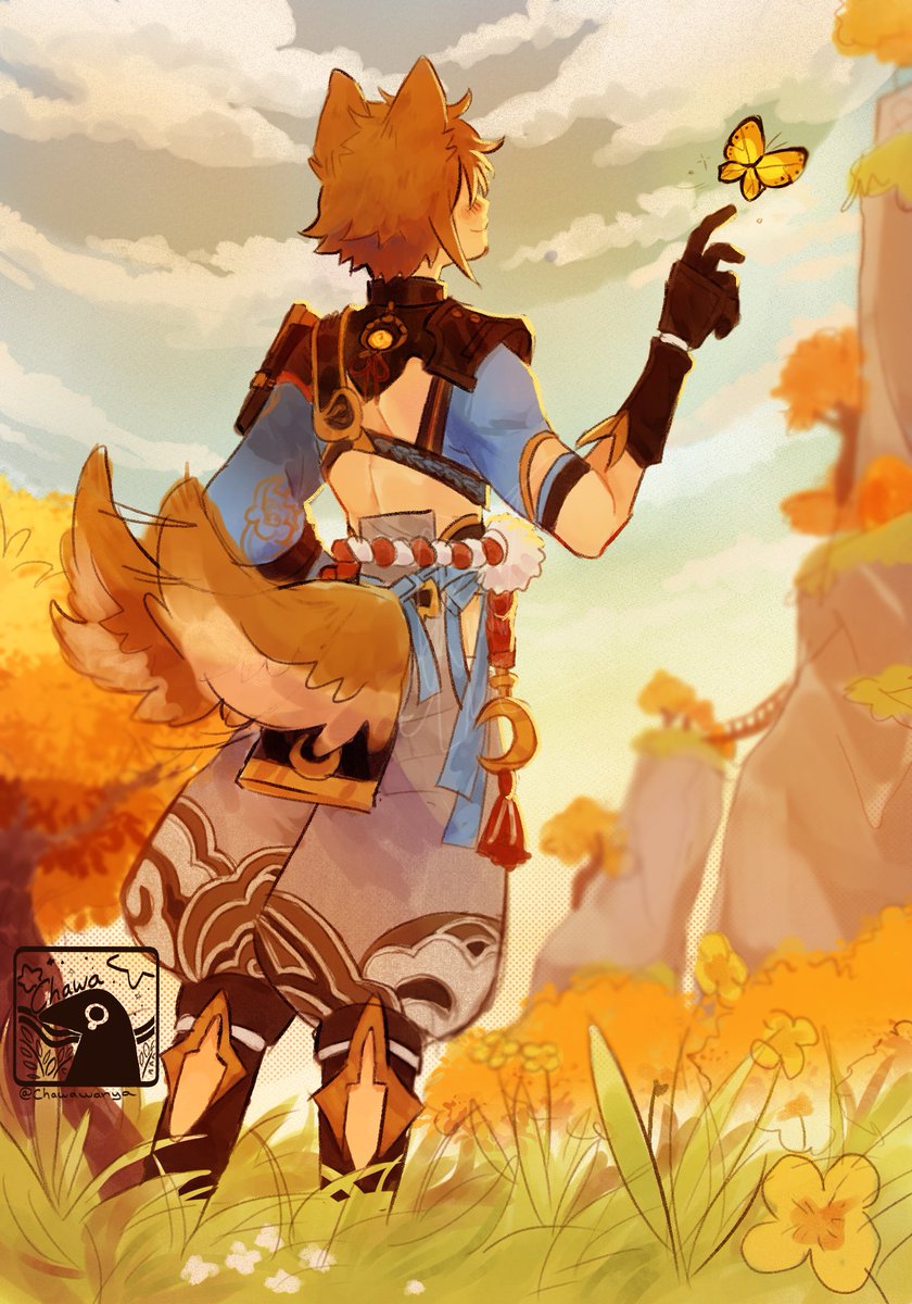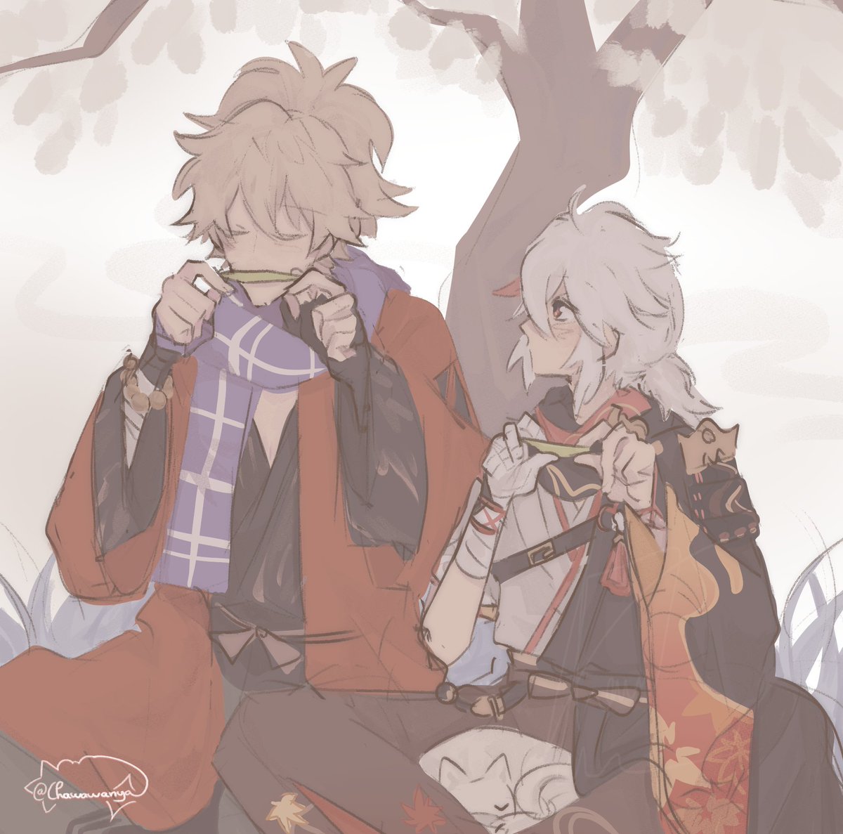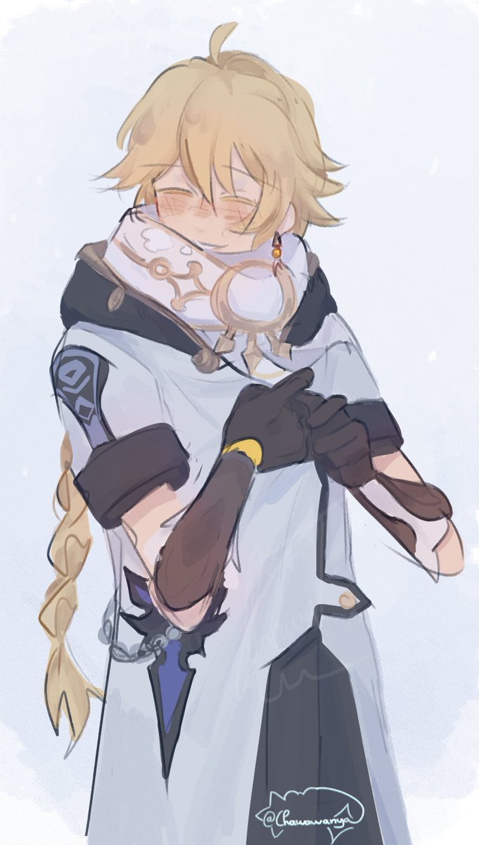 A quick sketch of Aether wearing his lover's coat --- #genshinimpactfanart #albether #Aebedo