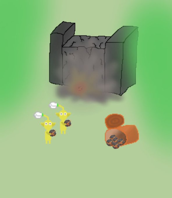 #ピクミン版深夜の真剣お絵描き60分一本勝負 バクダン岩!!!! ドカーン!!!!! in 希望の森!! (フタクチドックリ描こうと思ったけどこっちにした) (20分遅れて初めて5分過ぎたから45分間だww)