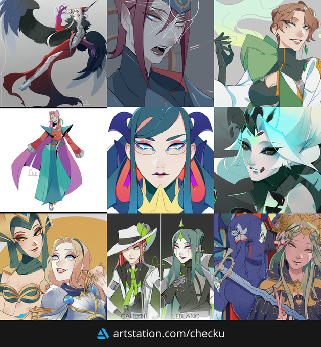 It's #PortfolioDay ! I'm Checku, a character illustrator, and I love working with bright colours and sharp shapes ✨Available for freelance work✨ Artstation: artstation.com/checku ✉️: checkubusiness@gmail.com