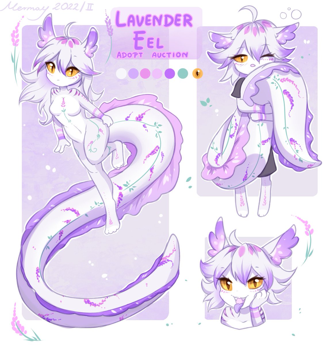 Another #Mermay creature! Meet Lavender Eel :D This little one is up for auction here: furaffinity.net/view/47045912/ You can also leave your bid here, and I'll keep it updated! ~ #furry #anthro #adopt #adoptable #eel #design
