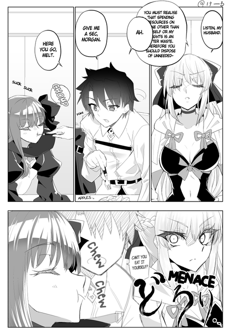 @k_ru_ 英語版です! [EN] [Skeb] Morgan VS Meltryllis FGO Manga (1/1) Translation/英訳 @TheParacite Typeset/植字工 @Cheese6Mac