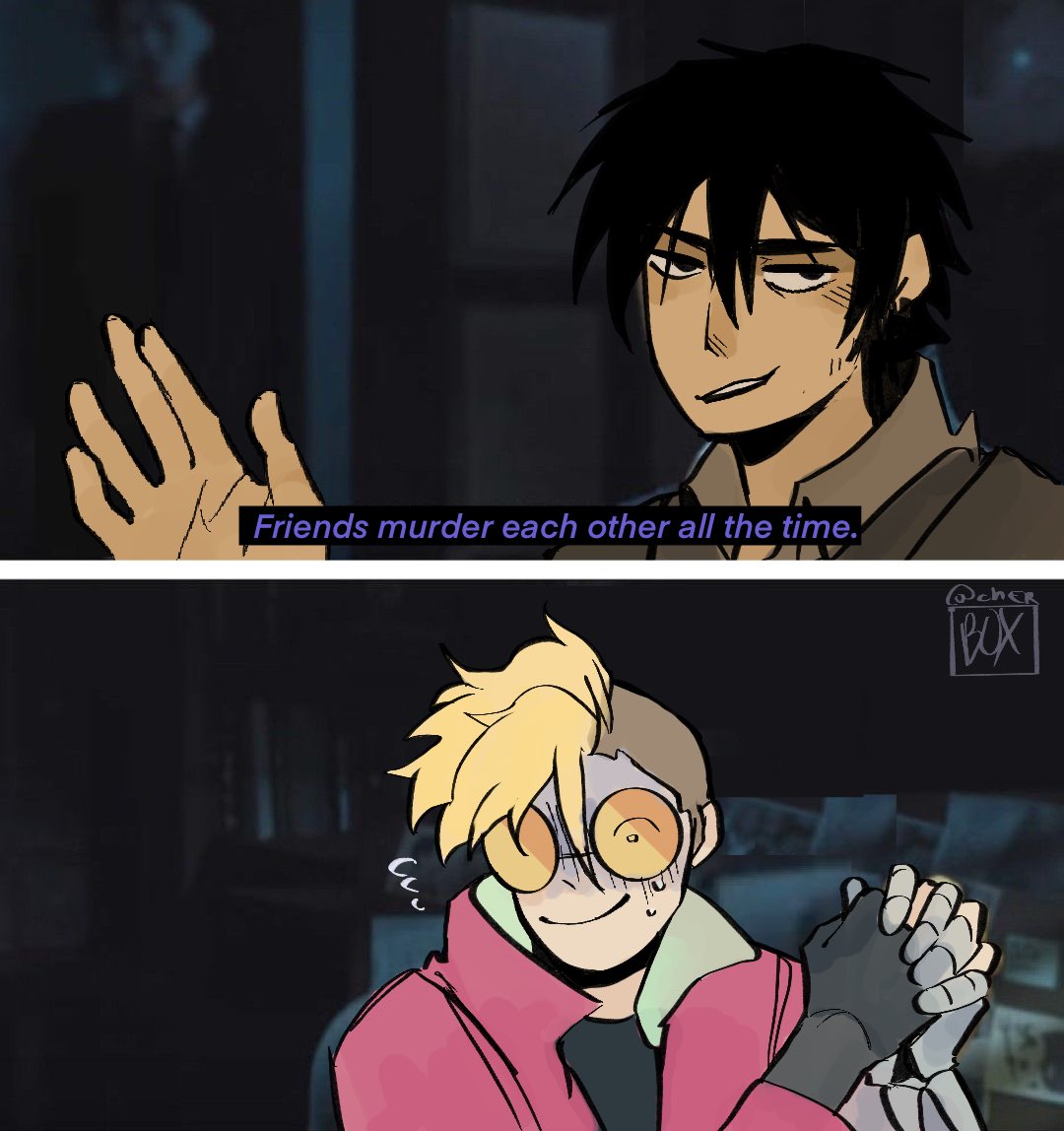 Meryl’s been banging on the door for the last twenty minutes #wolfwood #trigun_stampede #trigunfanart #merylstryfe twitter.com/cherboxishere/…