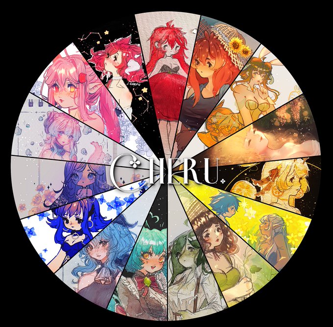 ✤ #PortfolioDay ✤ Hi!! I'm Cheru, a freelance Illustrator, I love traditional art and designing outfits the most!! I often fanart vtubers I like and I hope to rig my own 2d model and stream soon!! 🤍