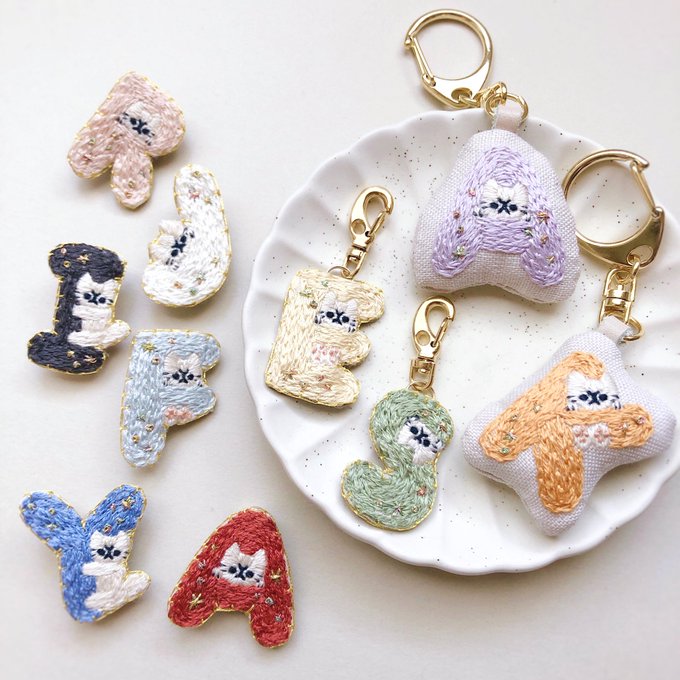 アルファベットと猫の刺繍ブローチ・キーホルダー・チャームの販売を開始しました🐈 それぞれ選べる全10色で推し活にもオススメです💫 本日はminneは21時からのクーポン、Creemaはポイント5倍中なのでぜひご覧くださいませ♩ minne minne.com/@chim-neko Creema creema.jp/c/chim/item/on…