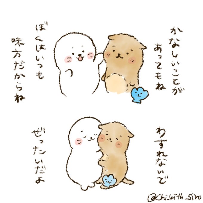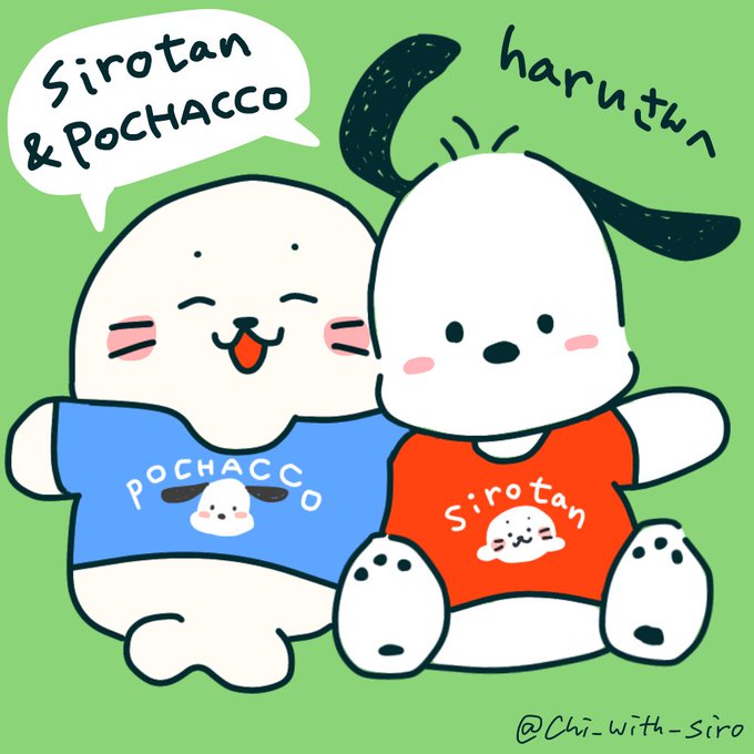 【しろたんキャラコラボ部門②】 @whitexxxts さんリクエストの「しろたんとポチャッコのコラボ」です! Tシャツが2人とも似合う〜♪ #しろたん #しろたん応援し隊 #しろたんリクエストイラスト企画2021GW