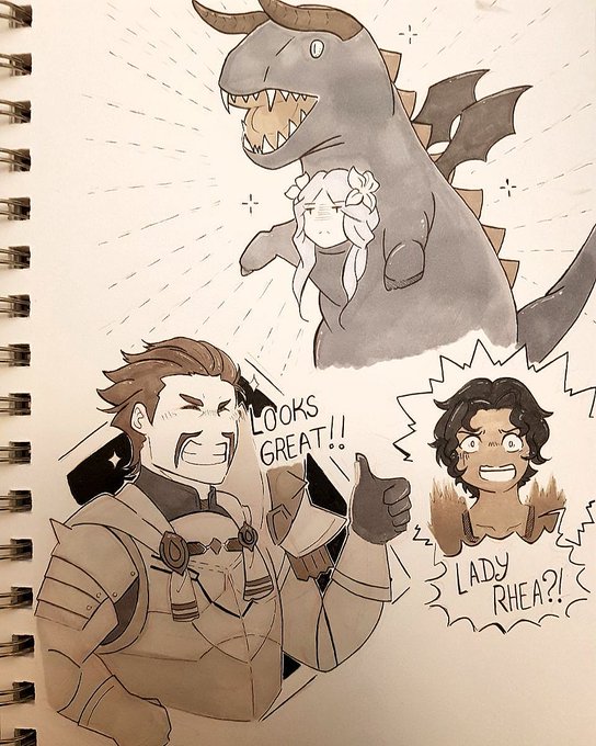 #Inktober2019 Day 12: Dragon Finally, Alois has found the perfect costume for Rhea :D #Inktober #Inktoberday12 #FireEmblem3Houses #fireemblem #rhea #cyril #alois #dragon