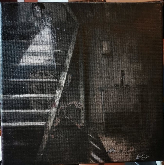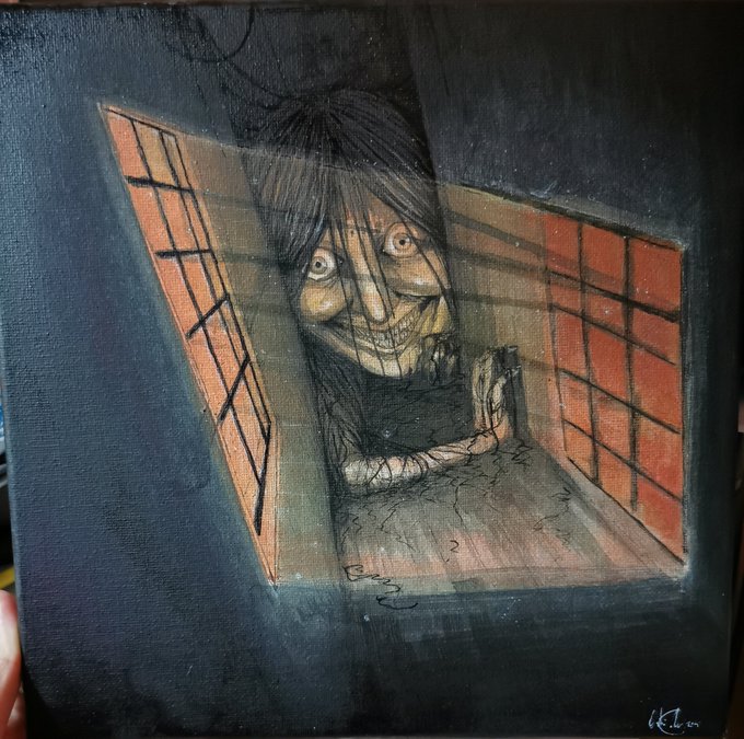 i might rework this idk but here's my latest painting. #HorrorArt #creepy #monster #inkdrawing #ArtistOnTwitter