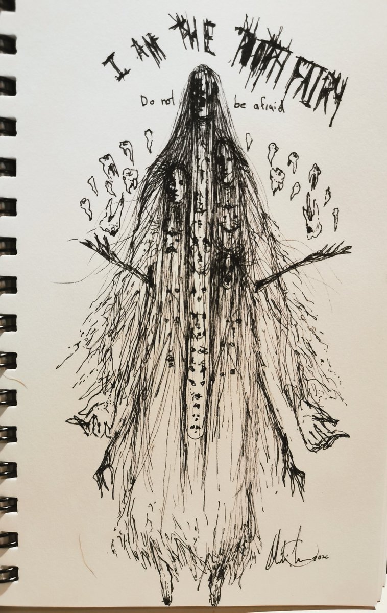 She would like to show you her bug collection. #art #horror #creepy #ghost #inkdrawing #ArtistOnTwitter