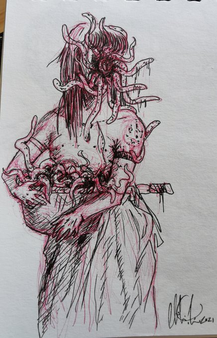 Stream sketches. Enjoy! #art #horror #creepy #bodyhorror #ballpointpen #sketch #inkdrawing #ArtistOnTwitter