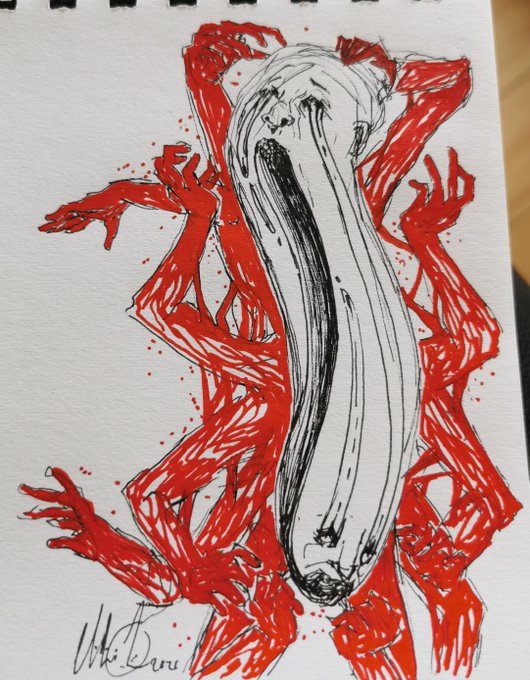 Got a red paint marker. #HorrorArt #bodyhorror #monster #creepy #inkdrawing #paintmarker #ArtistOnTwitter