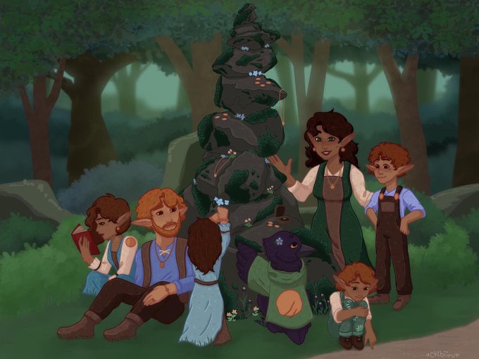 Kiri and the Schuster family, worshipers of Avandra, the Changebringer, for @ExandriaArtists’ project Beyond the Divine Gate! Had tons of fun working on this piece <3 #CriticalRoleFanart #BeyondtheDivineGate #CriticalRoleArt