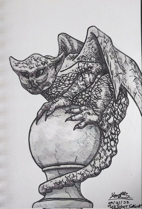#Inktober day 21: "#Baddog". 🐺 I managed to squeeze in one more #Hellsing #fanart into the #inktober2022 art challenges. Here's #LukeValentine trying really hard not to get mauled by #Baskerville again. Lol